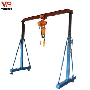 VOHOBOO Light Duty Gantry Cranes are fabricated and welded to provide precise load positioning for medium to heavy loads. They are ideal for applications that require an economical, versatile lifting. Solution. If your facility can not support an overhead bridge crane a light duty gantry crane is the perfect solution. These gantry cranes are self-supporting and travel directly on the floor. VOHOBOO Light Duty Gantry Cranes come with a power drive system that includes polyurethane (trackless) or V-groove wheels. A light duty gantry crane can easily be moved from one location another if you rent or lease your facility.